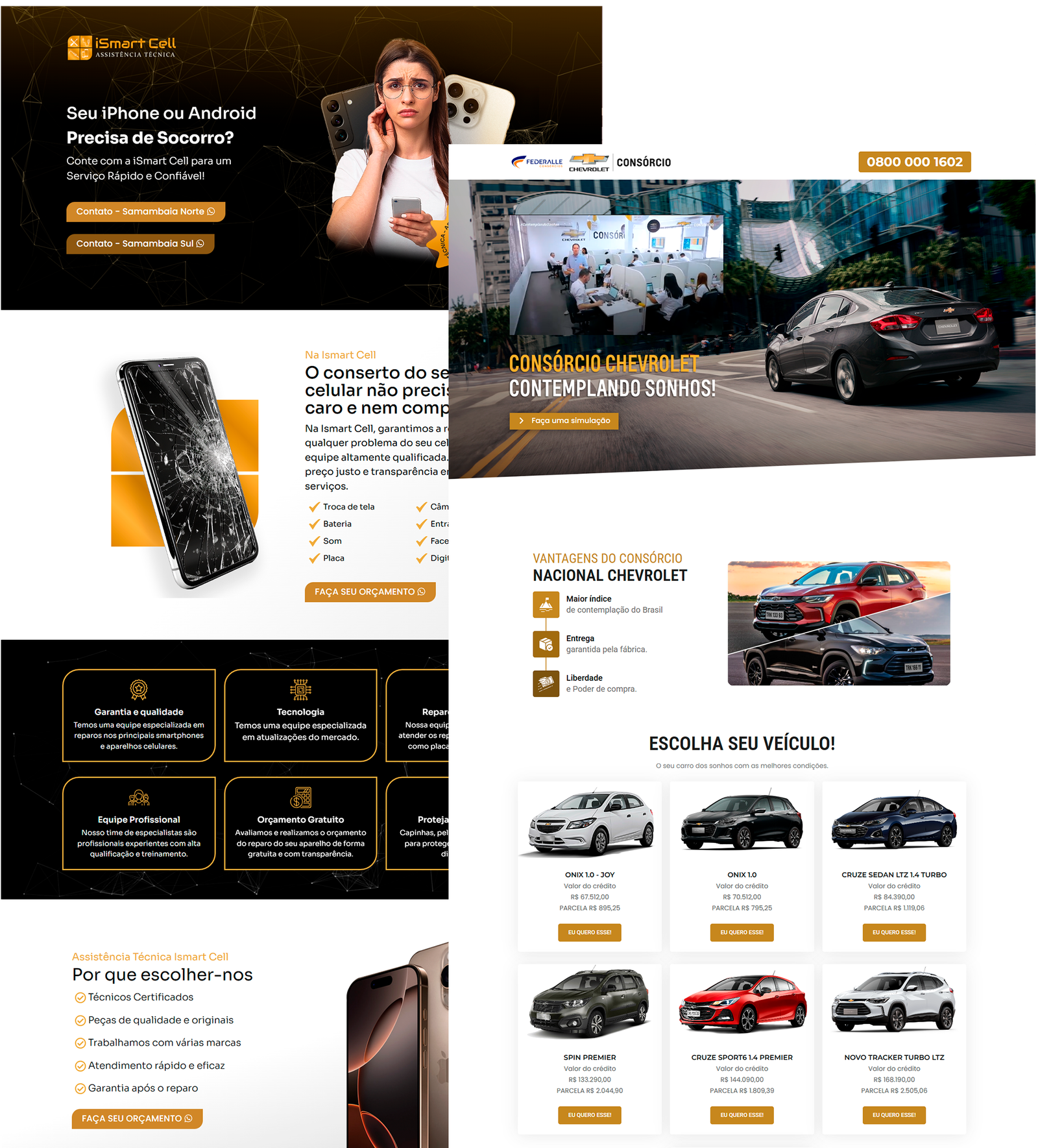 Páginas 100% focadas em conversão. Ideais para lançar produtos, capturar leads ou maximizar o ROI de suas campanhas, gerando resultados rápidos.
