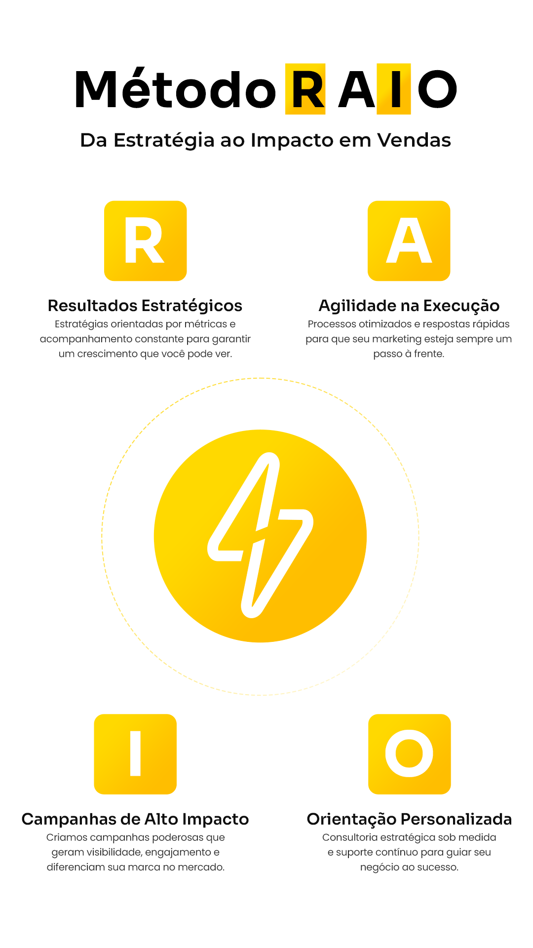 Conte com uma assessoria de marketing estratégico focada em agilidade, energia e impacto. Criamos estratégias rápidas e precisas que geram resultados reais para sua marca.